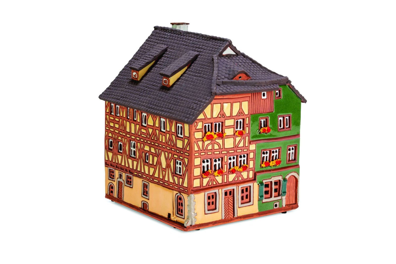 Our hand-made ceramic houses are crafted with care from selected clay, shaped with attention to detail, and painted by hand. Each piece is similar yet uniquely different, with slight variations in shape and color, making every house special and exclusive.