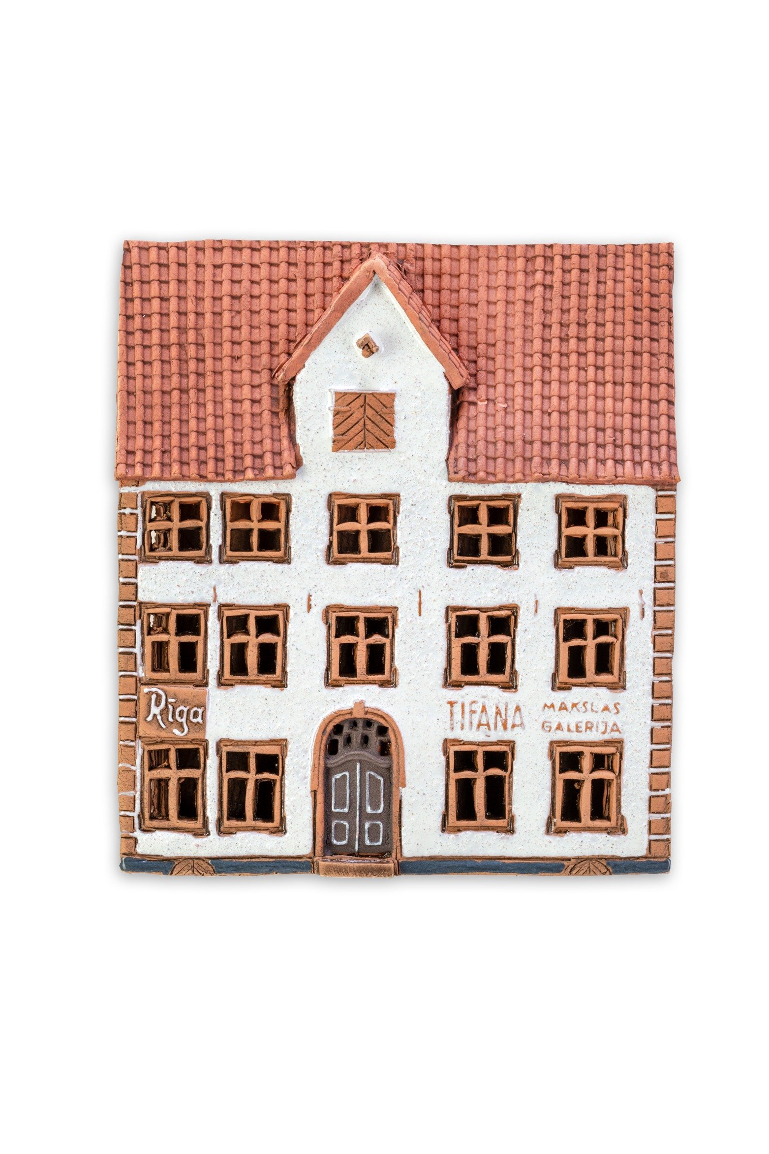 Handmade exclusive ceramic plaque of the original house in Riga, suitable for hanging on the wall.