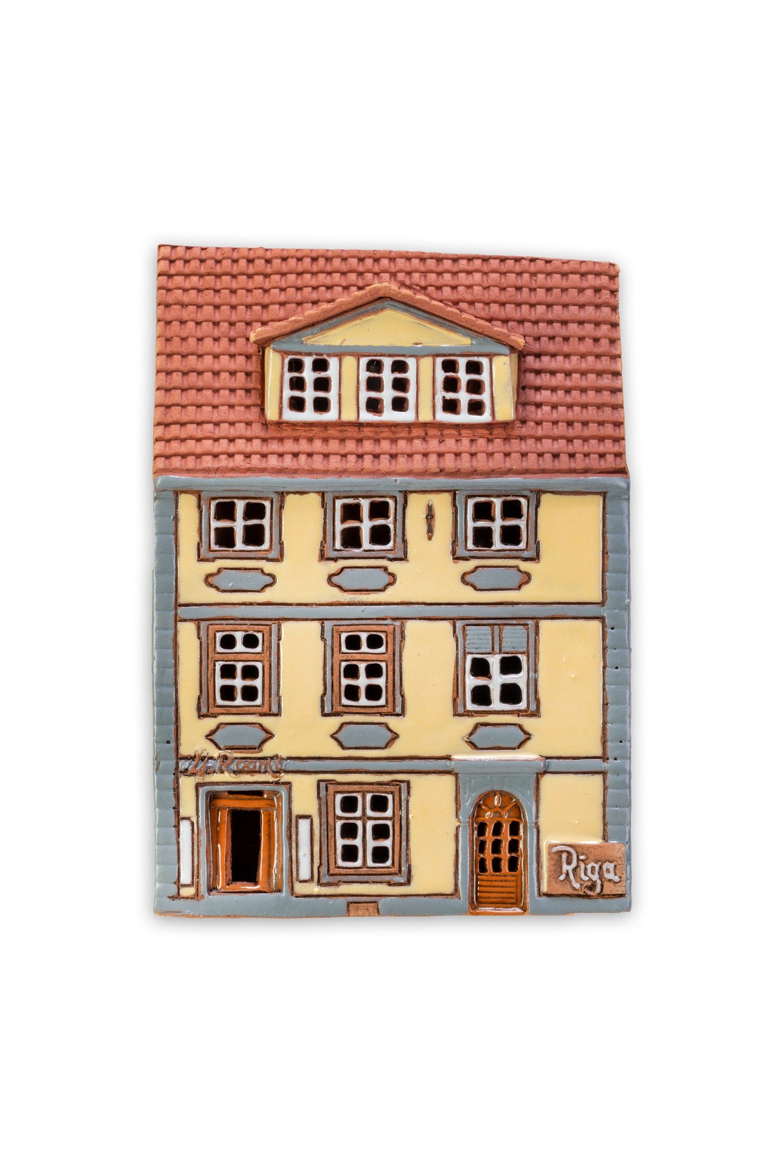 Handmade exclusive ceramic plaque of the original house in Riga, suitable for hanging on the wall.